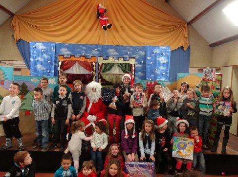 La compagnie « le théâtre à sornettes » a présenté aux petits et aux grands « la surprise de Noël ». Très belle histoire sur deux enfants de deux peuples différents qui se croisent et se lient d’amitié. Zoé du pays lune blanche et Ezo du pays blanche lune font chacun une lettre au père noël pour demander une potion magique qui réunira enfin leurs deux mondes. A travers de nombreuses péripéties et d’amis qui vont les aider, Zoé et Ezo vont enfin voir leurs rêves se réaliser. Puis après de nombreux appels d’enfants le Père Noël est arrivé avec une hotte pleine de cadeaux, tous les enfants présents au spectacle ont eu la joie de recevoir un cadeau et un sachet avec pain au chocolat, clémentine et bonbons hum ! Qu’il est gentil ce Père Noël !! Les parents se sont retrouvés autour du verre de l’amitié organisé par le conseil municipal et l’amicale Prunaysienne. Nous lui donnons rendez-vous l’année prochaine ainsi qu’à tous les enfants.