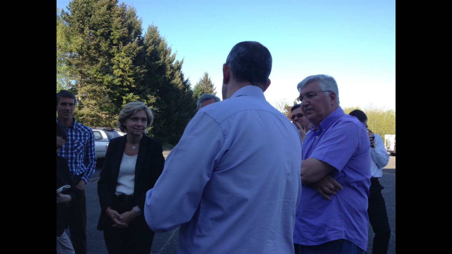 Valerie Pécresse ancienne ministre du budget en visite à Prunay le 23 Avril. Après avoir visité l'élevage de poules du Gatinais, rencontre avec les agriculteurs qui ont créé la société Gatichanve. Deux filières "courtes" qui sont des exemples d’un dynamisme certain....
