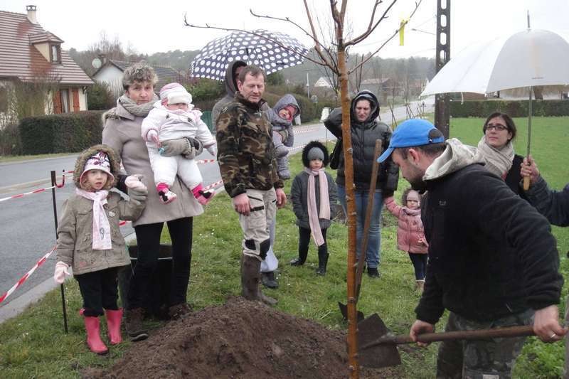 Un arbre, Un enfant. Autrefois pour célébrer une naissance, les hommes plantaient un arbre, selon les cultures c’était au choix, un olivier, un pommier, un cerisier. Puis nos sociétés modernes ont occulté cette tradition. Aujourd’hui avec la déforestation massive, planter un arbre est un geste fort ,chargé d’espoir et de symboles. Pour l’arbre comme pour l’enfant, c’est la vie qui commence. Ce samedi, et comme depuis plusieurs années, chaque petit Prunaysien a eu un arbre planté par ses parents. Cette manifestation qui a eu lieu sous la pluie s’est terminée par le verre de l’amitié.