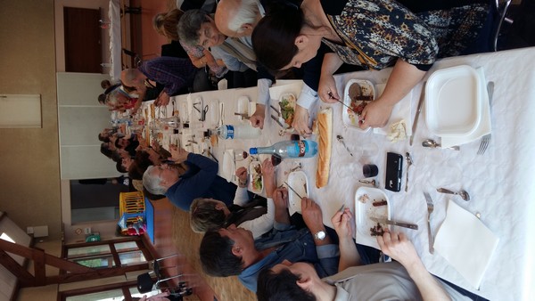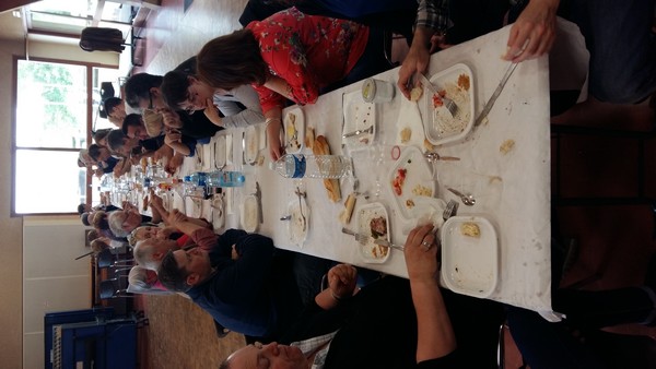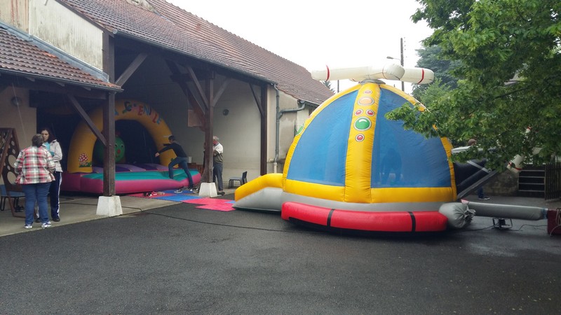 C'est par une journée très pluvieuse qu'a eu lieu la fête des voisins. Cette rencontre devait avoir lieu face à l'aire de jeu, mais une solution de repli a du être trouvée dans l'urgence. C'est donc sous le préau de l'école ainsi que dans la salle qu'ont eu lieu les "festivités". Ce moment de convivialité a permis à certains de se retrouver, pour d'autres se rencontrer, et pour les nouveaux arrivants, de se présenter... La foultitude de salades, et gâteaux concoctés en nombre largement supérieur à la demande, mais très appréciés de tous, ont obligé des partages de recettes et des discussions sur les manières de faire .... Après le repas, pendant que les petits continuaient à jouer, tous les adultes dans un même élan, ont rangé la salle et les environs.