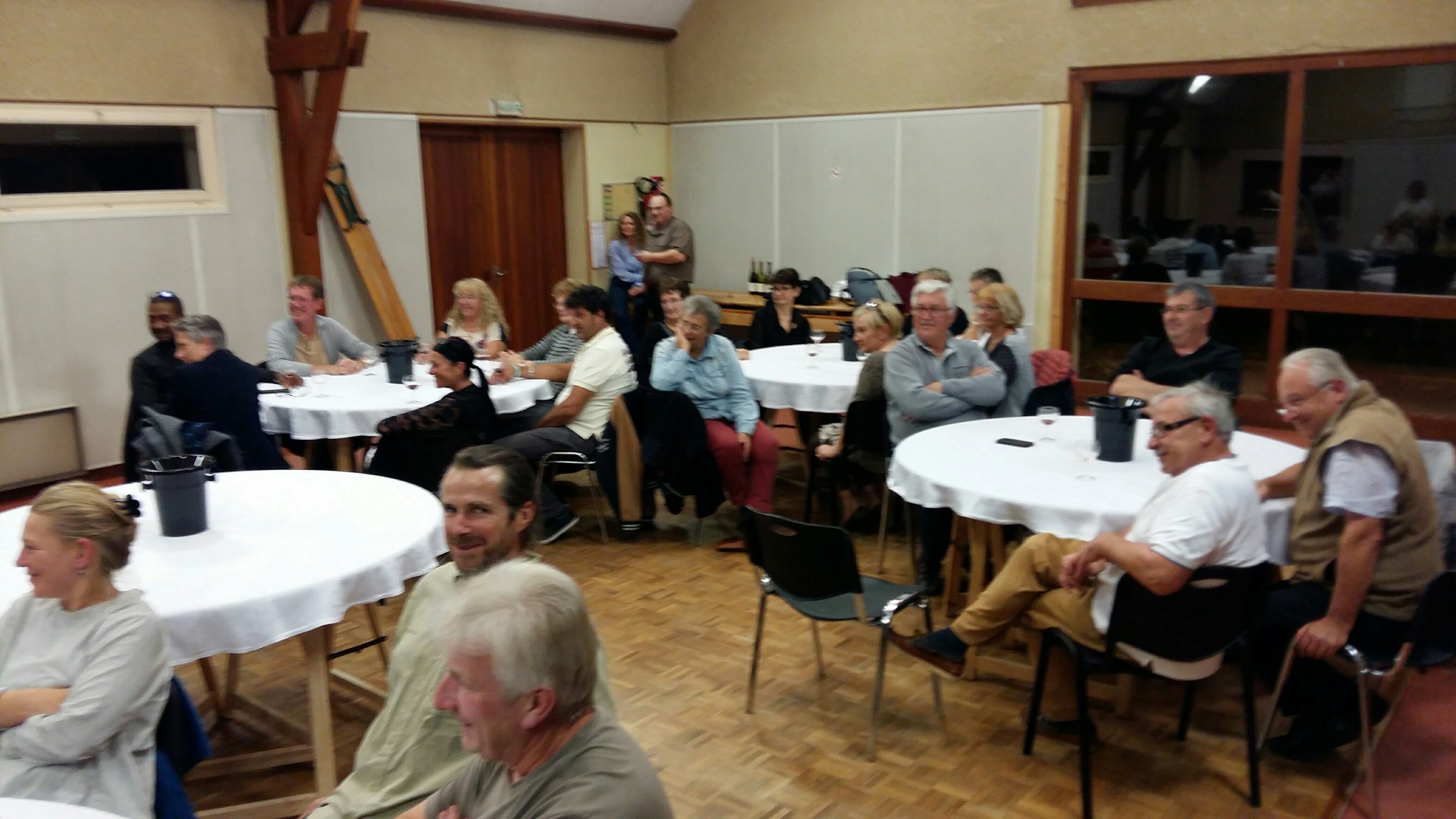La soirée du 14 octobre a été une réussite d’après tous les participants. En effet, M.CHailloux, caviste de Malesherbes et accessoirement expert œnologue, nous a tenu en haleine toute la soirée, en nous présentant cinq vins différents et en essayant de faire passer au public quelques rudiments pour estimer de la qualité d’un vin... Et entre chaque dégustation, une saynète sur le sujet du vin était jouée par des acteurs locaux pour agrémenter la soirée.