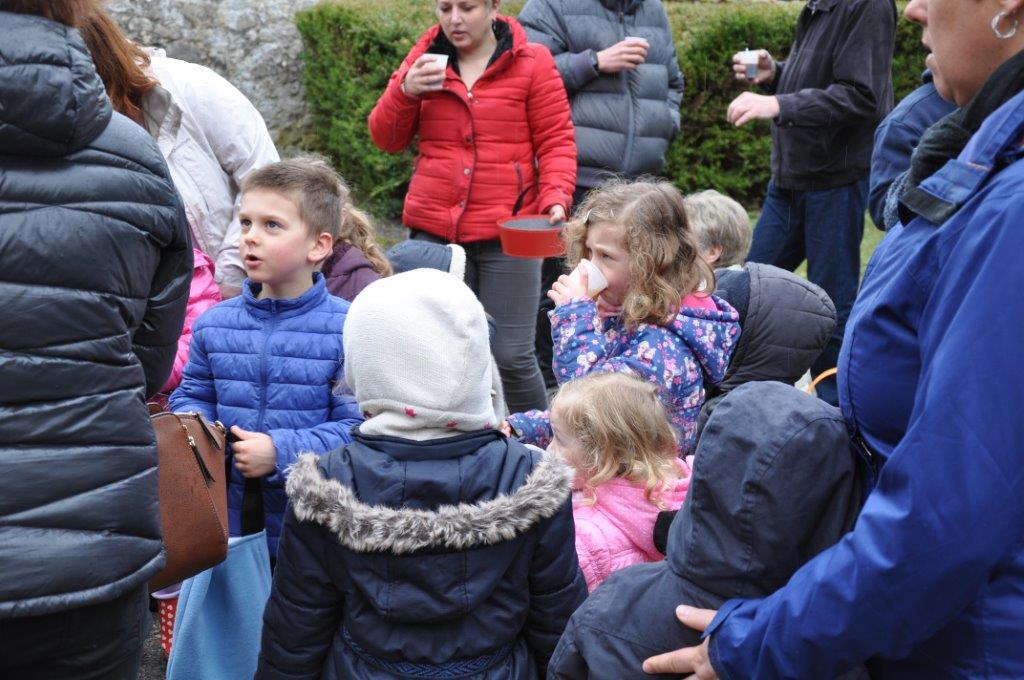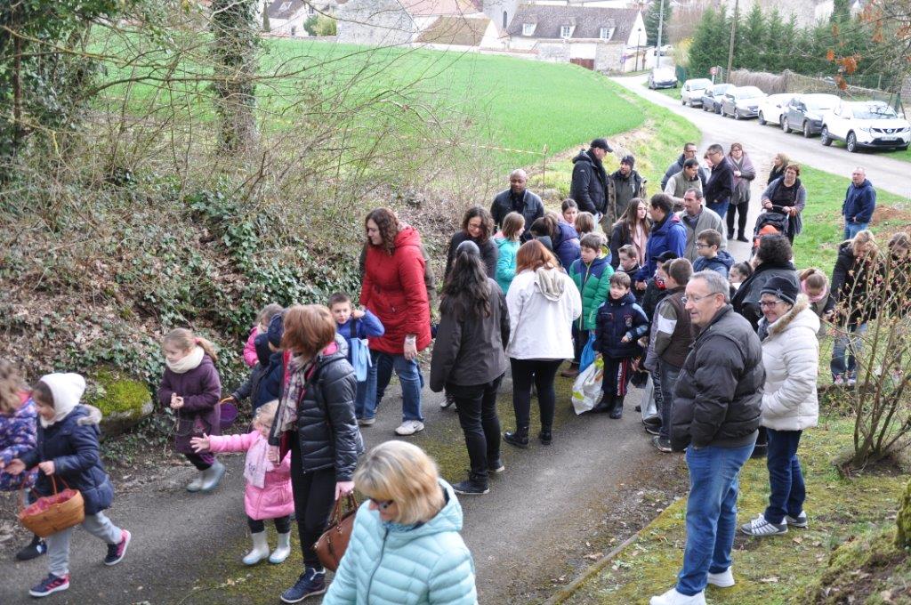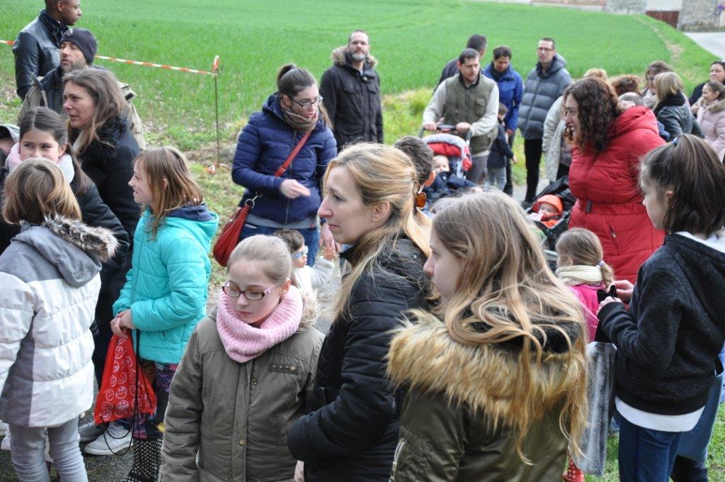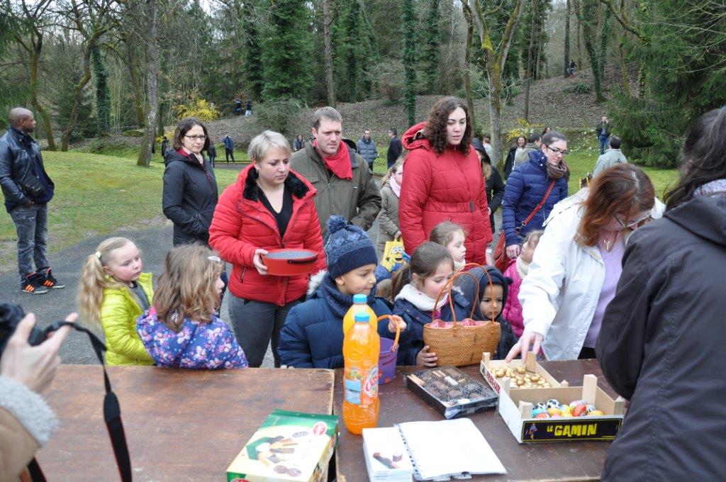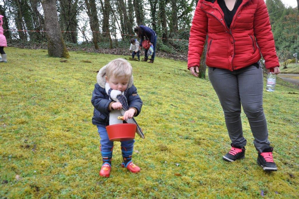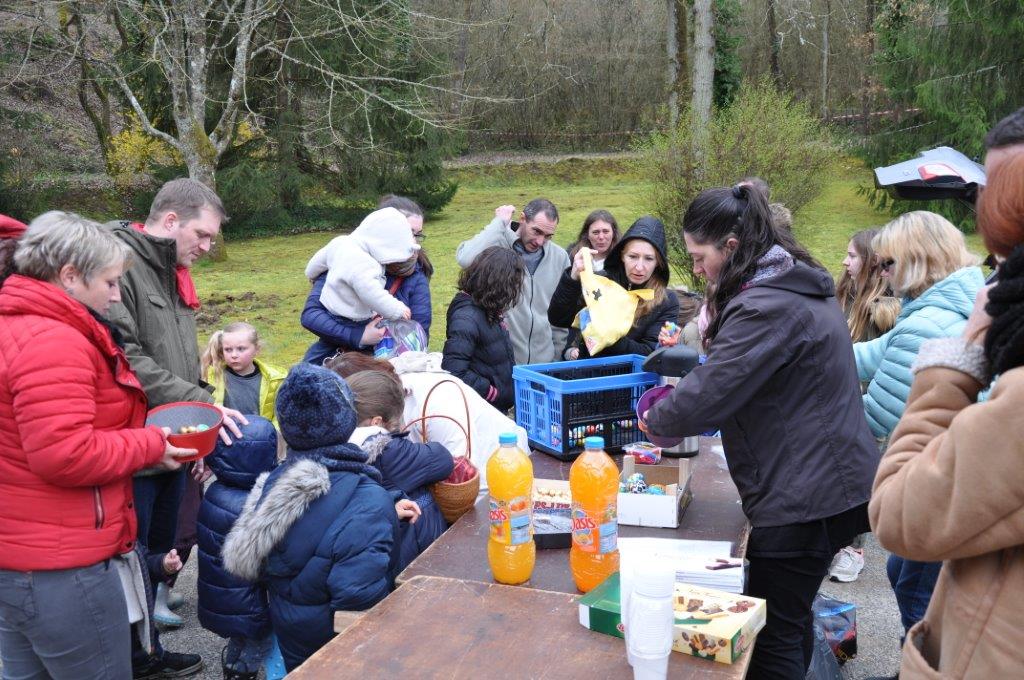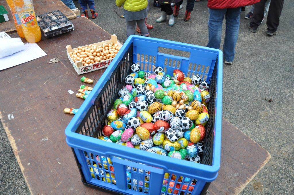 La cueillette s'est déroulé comme chaque année près du cimetière. 38 enfants paniers à la main ont tenté de trouver un maximum de chocolat, qui une fois rassemblés ont été répartis équitablement entre chacun.