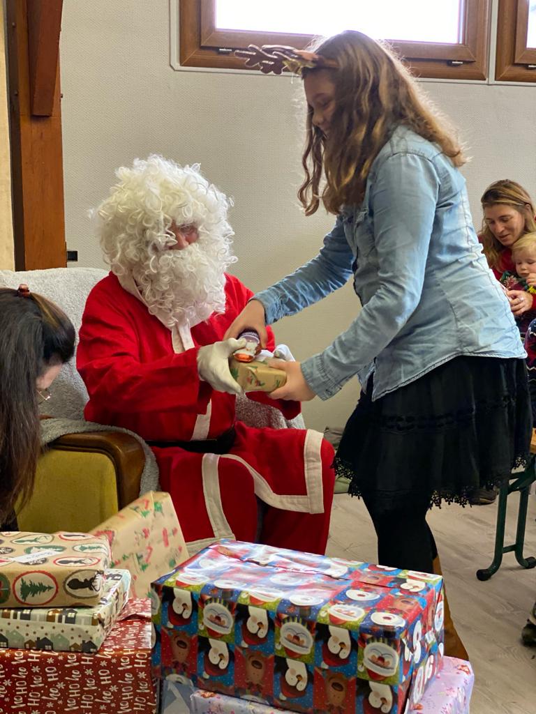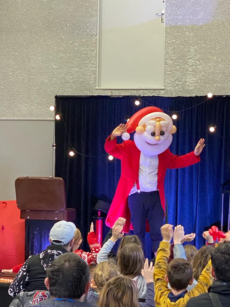 Samedi 17 décembre les enfants ont pu assister au spectacle de cette fin d’année «  Mr Safari et la magie de noël ». Comme ils ont tous été sages et gentils durant toute l’année, ils ont pu avoir la visite tant attendue du Père Noël !!! Sa hotte était tellement remplie de cadeaux et de chocolats qu’ils ont tous été gâtés pour le plus grand plaisir des enfants. Après une photo souvenir avec le Père Noël, ils ont pu partager un jus de pomme chaud et vin chaud pour les plus grands accompagné de viennoiserie. Un grand merci aux Mères Noël !!!!!